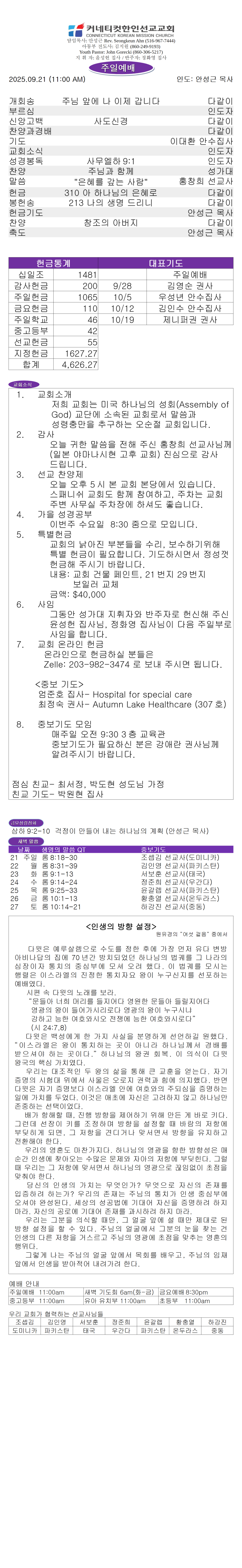 September 20, 2025 . CKMC 2025.09.21 교회주보