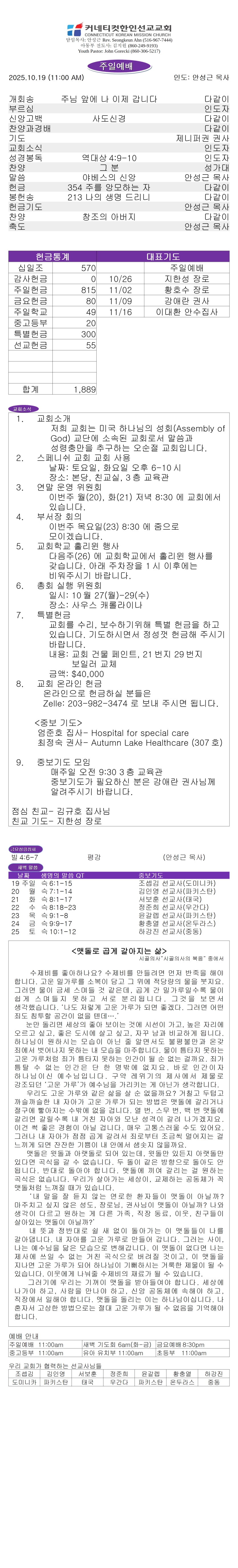 October 18, 2025 . CKMC 2025.10.19 교회주보