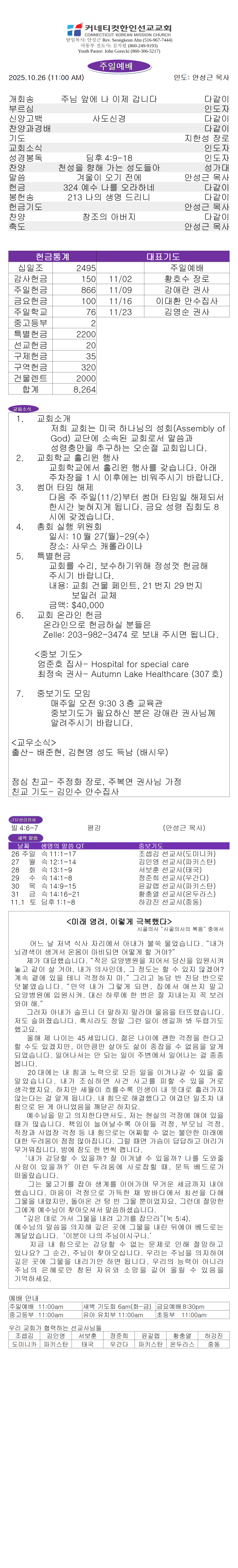 October 25, 2025 . CKMC 2025.10.26 교회주보