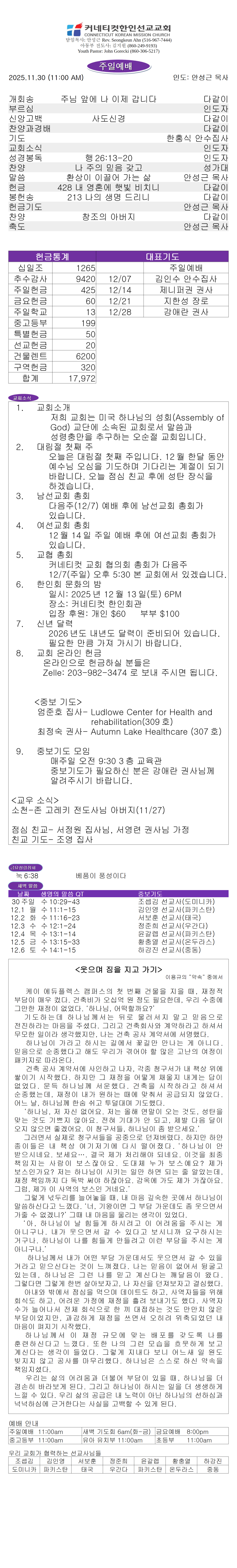 November 29, 2025 . CKMC 2025.11.30 교회주보